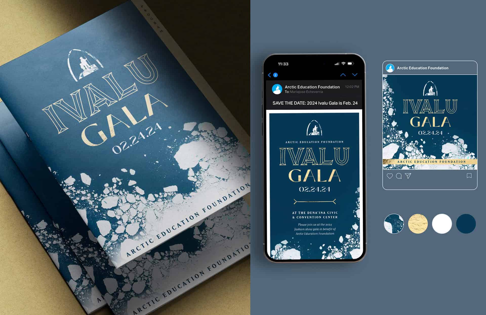 Yuit partnered with the Arctic Education Foundation (AEF) to brand the Ivalu Gala, drawing inspiration from the Arctic Ocean’s ice chunks as a metaphor for AEF’s mission.